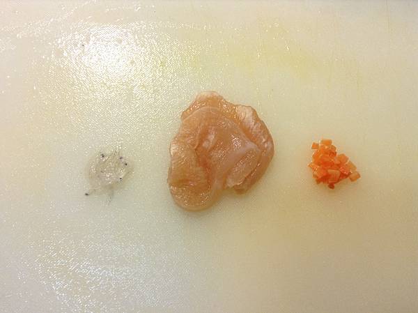 ▲原料:雞胸肉、吻仔魚、紅蘿蔔